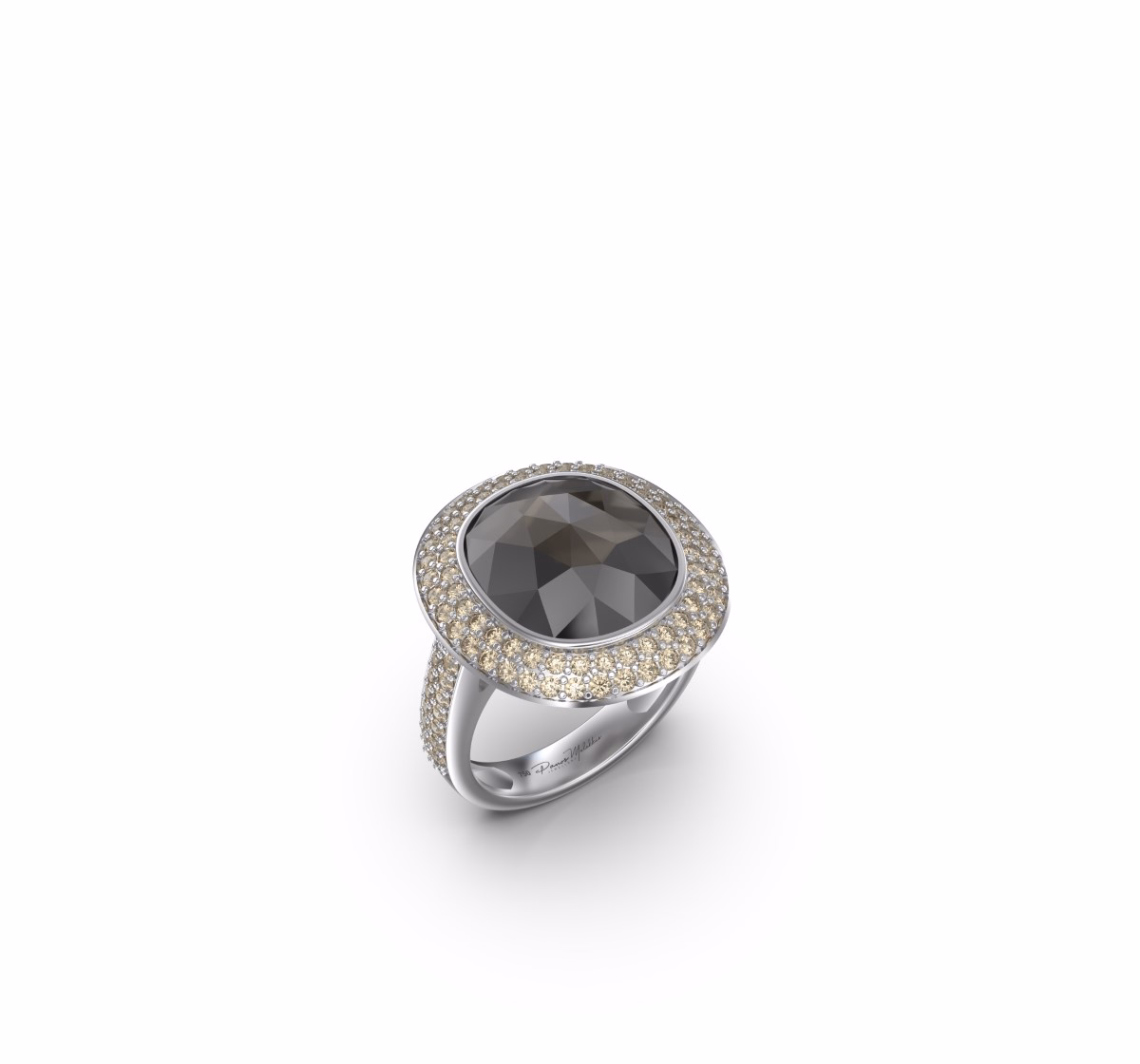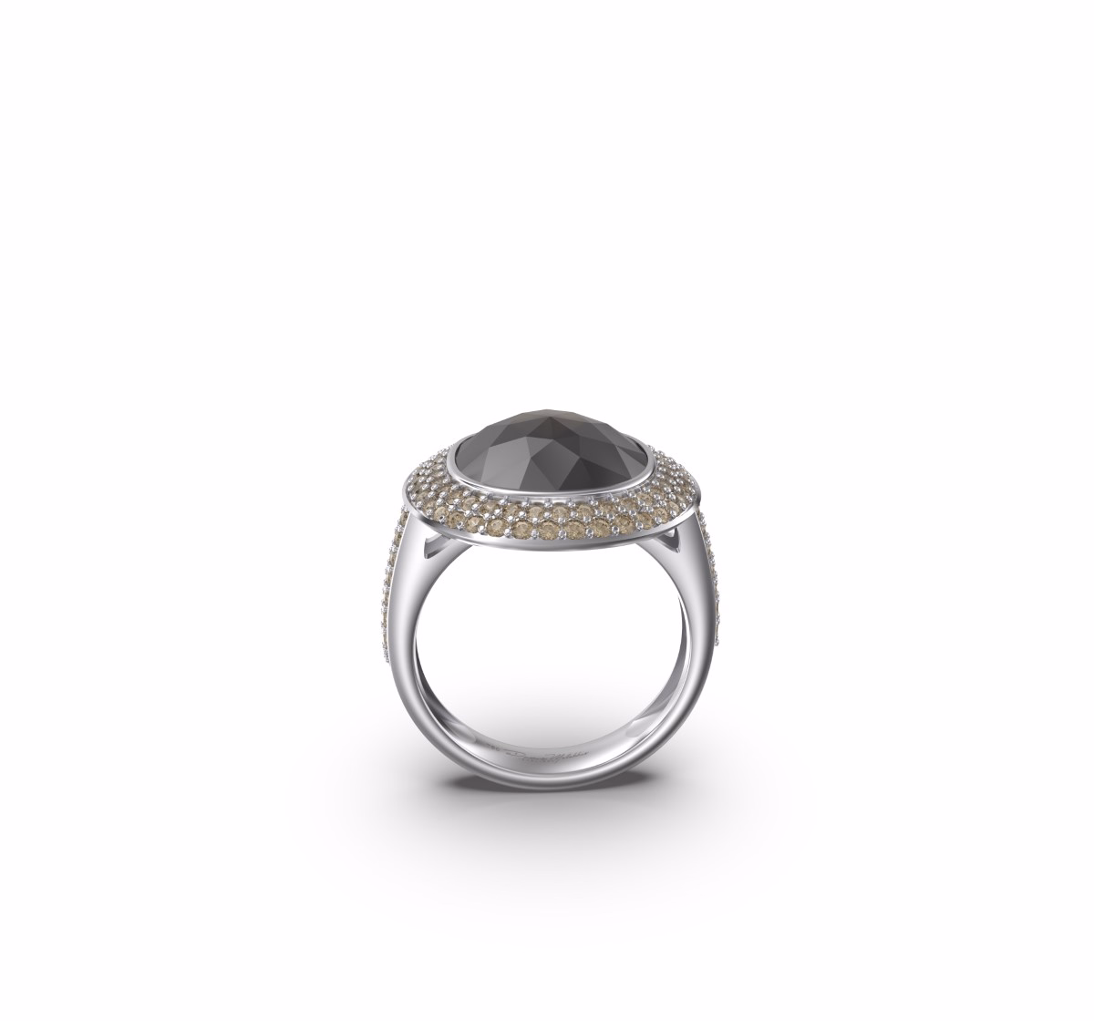 This captivating ring unites the power of raw nature with the polish of fine design.