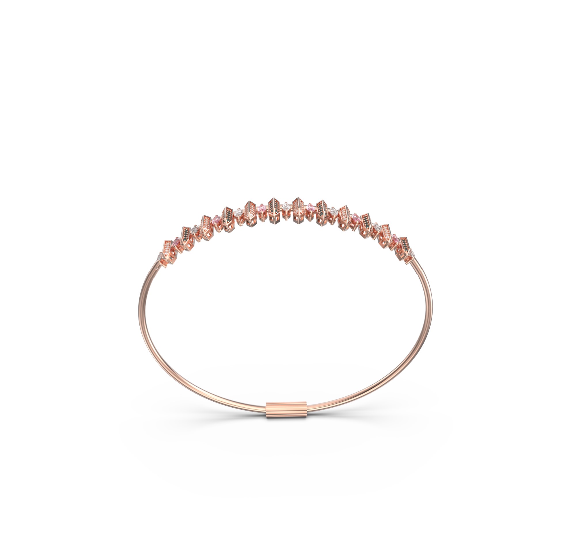 18k Rose Gold Bangle with Colored Sapphires & Diamonds