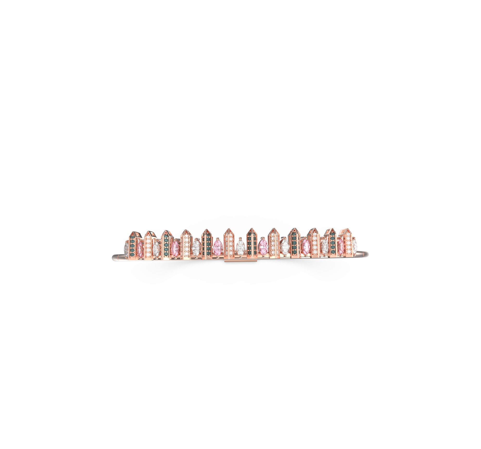 Meticulously handcrafted, each gemstone is precisely set within a sculptural structure of warm rose gold, weighing 9.46 grams. The result is a refined yet expressive jewel that feels both modern and timeless — a symbol of artistry in motion.