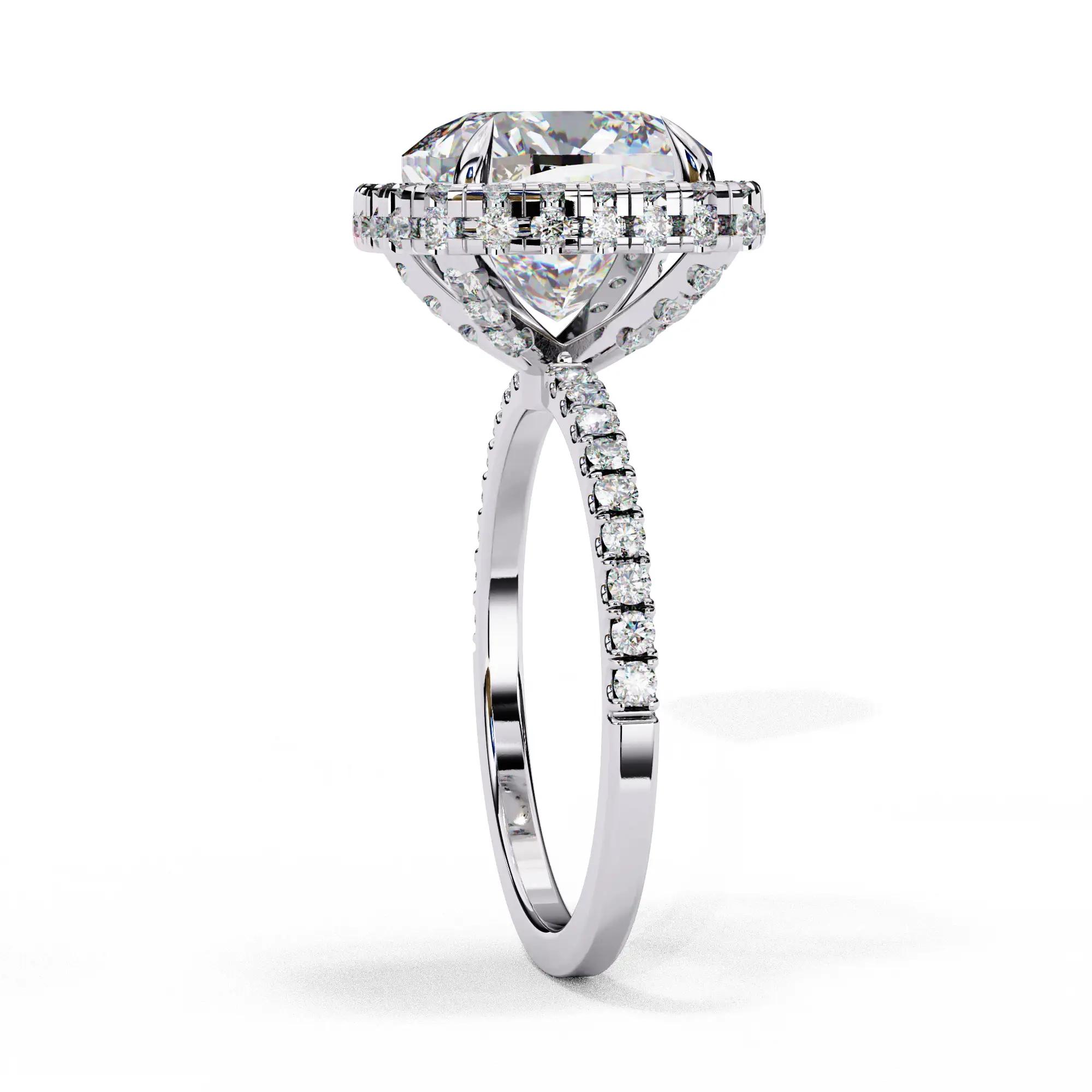 A refined pavé band provides additional sparkle while keeping the silhouette elegant and balanced. A striking and sophisticated design for those who want maximum brilliance with timeless charm.