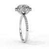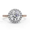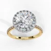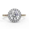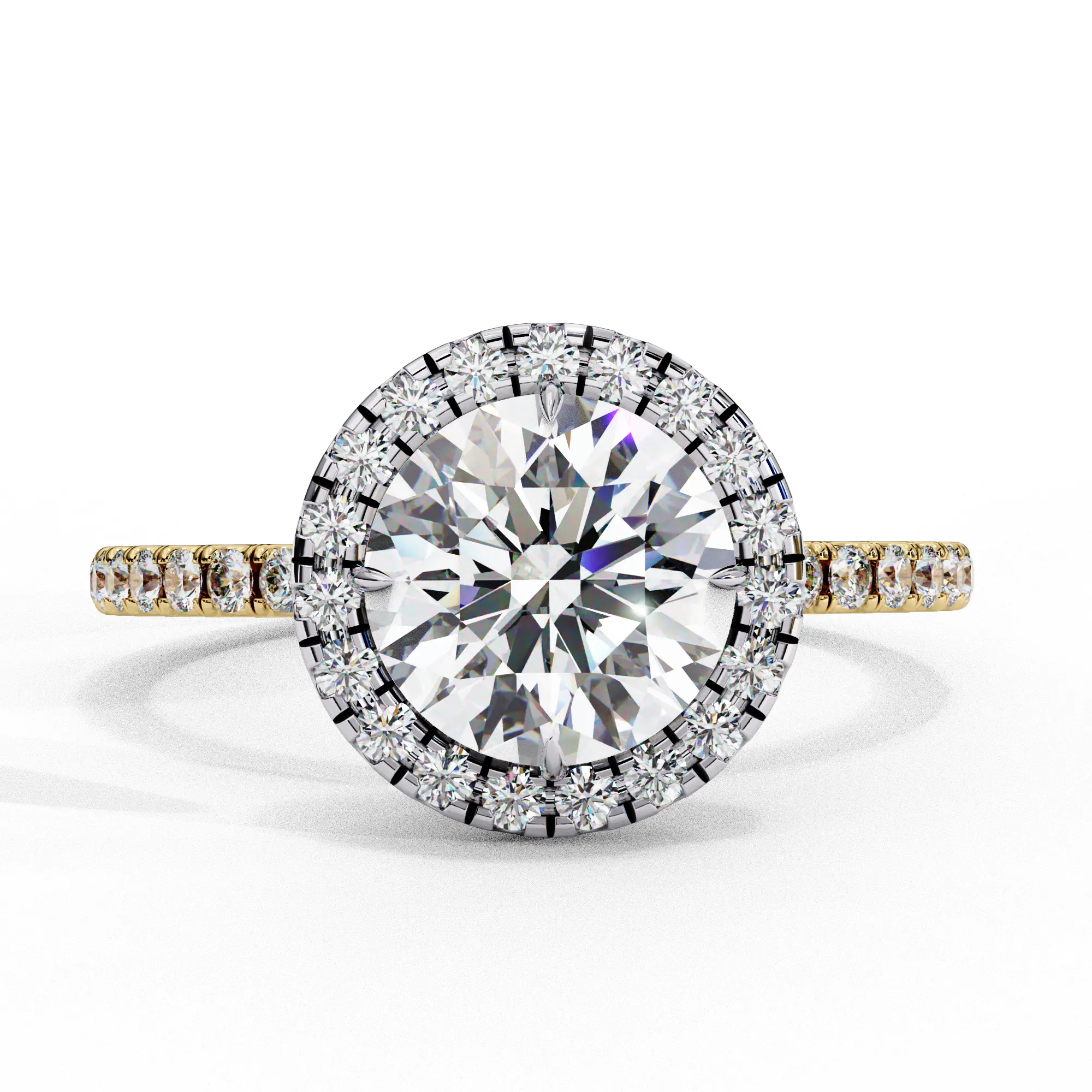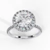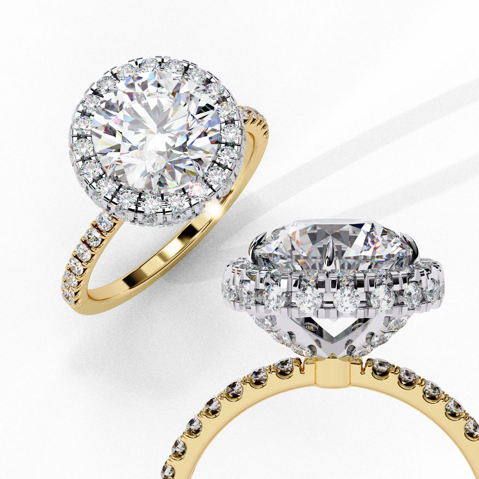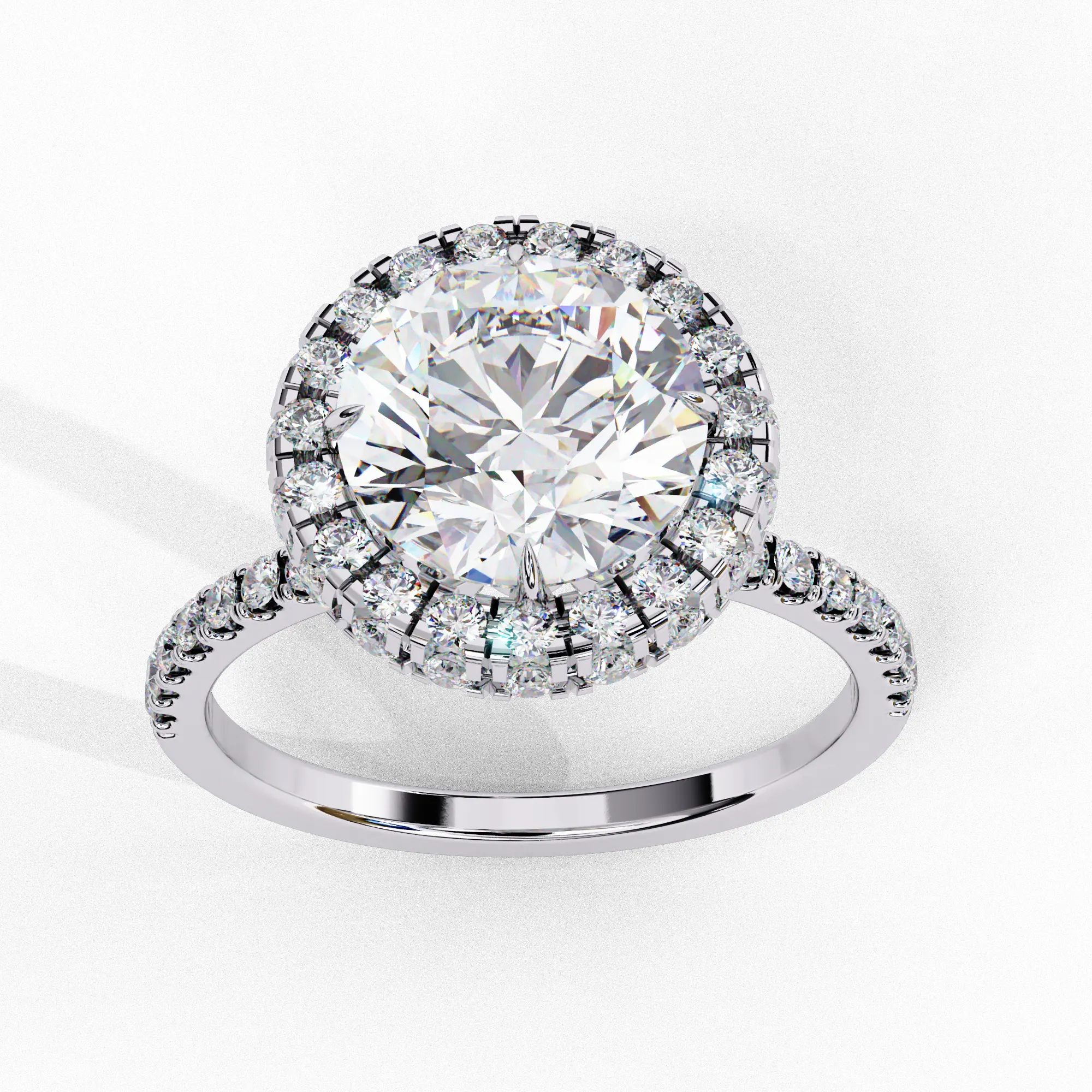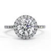 This elegant halo engagement ring features a brilliant round center stone surrounded by two concentric tiers of sparkling diamonds, creating a luminous, full-circle radiance. The double-halo design adds depth and dimension, making the central diamond appear even larger and more dazzling.
