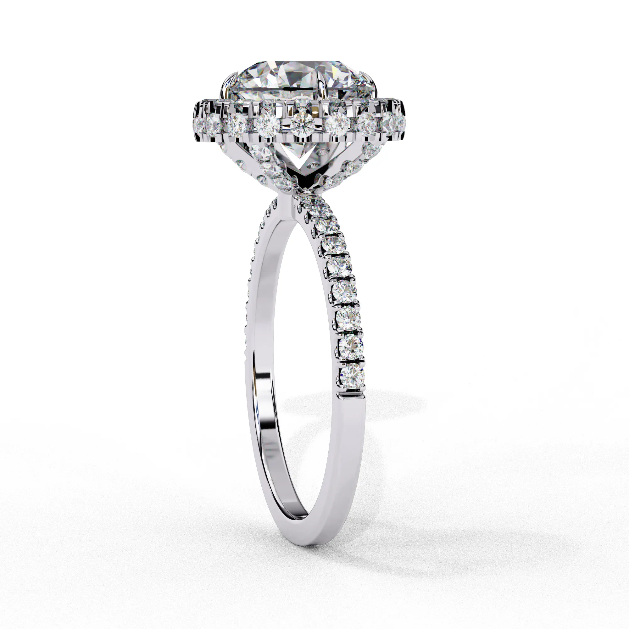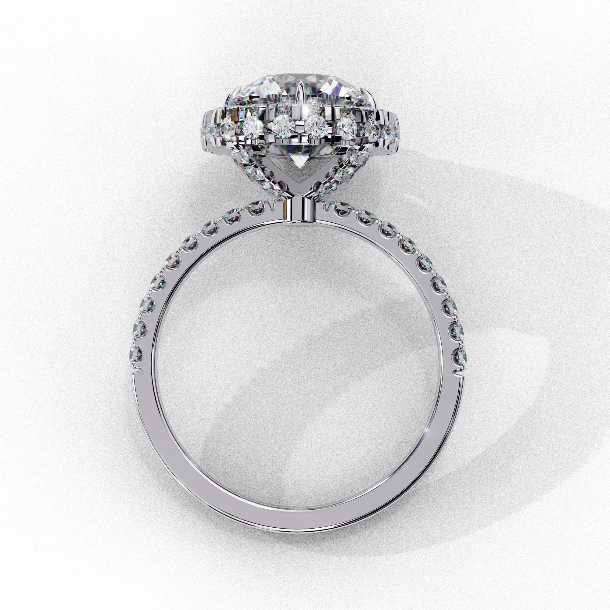 A refined pavé band enhances the ring’s brilliance while maintaining a delicate, timeless silhouette. A sophisticated statement piece crafted for those who desire maximum sparkle with graceful elegance.