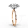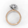 The pavé diamond band adds refined sparkle, while the sculpted gallery offers an intricate, elevated profile. A luxurious and dramatic design crafted to make a statement from every angle.
