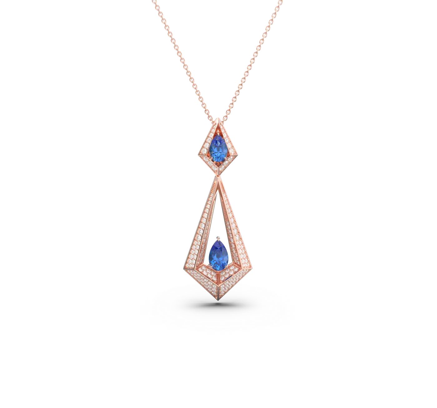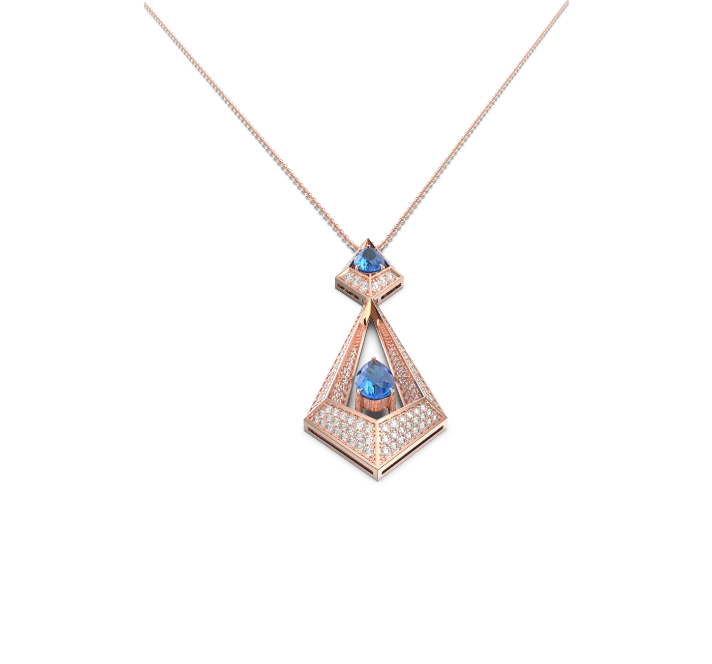 Geo Collection Necklace in Rose, White, Yellow gold & Blue Sapphire