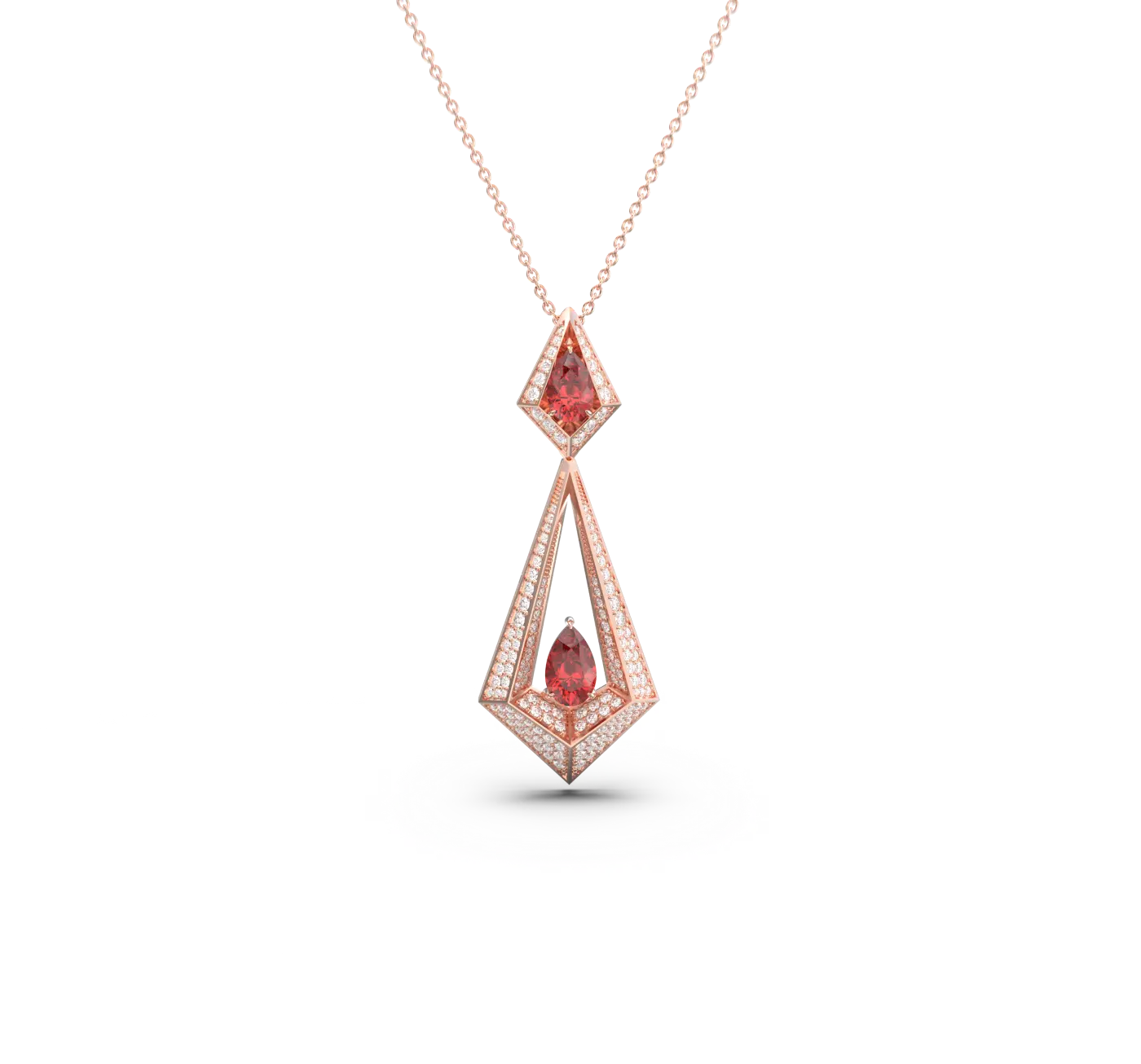 Geo Collection Necklace in Rose, White, Yellow gold & Ruby