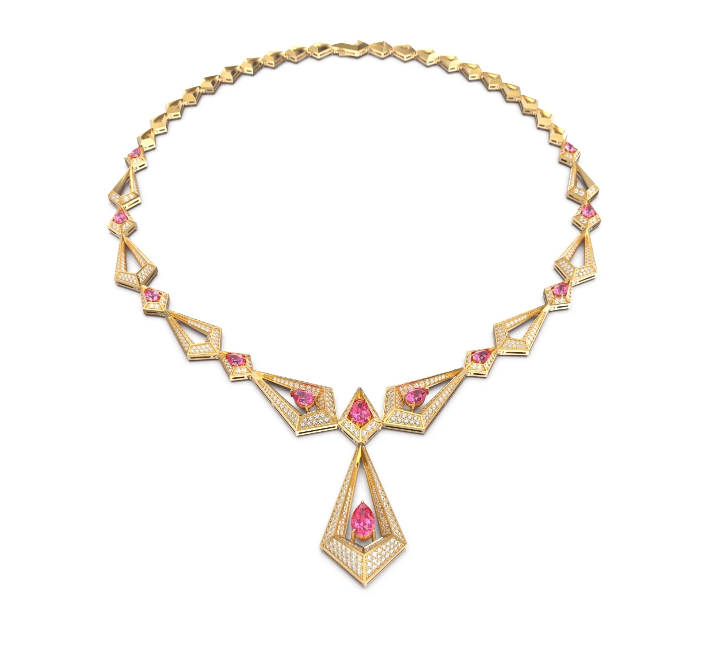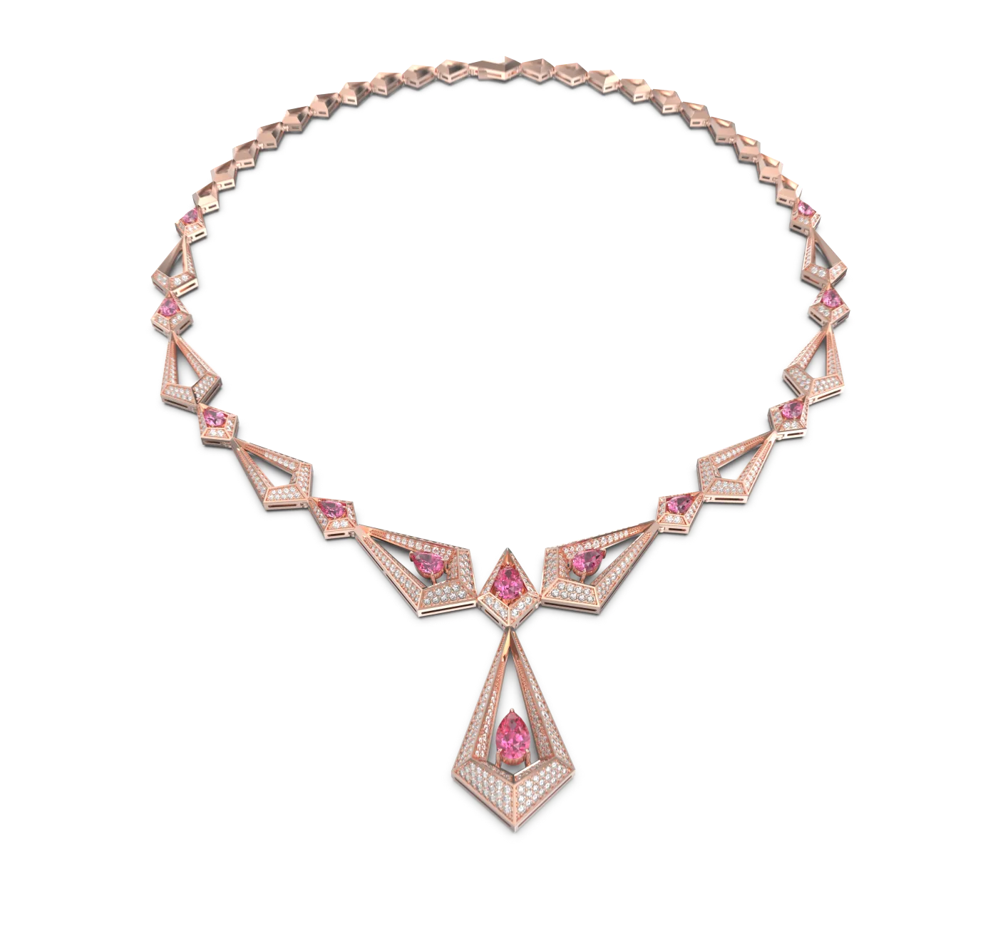 Geo Collection Necklace in Yellow, White, Rose gold & Pink Sapphires