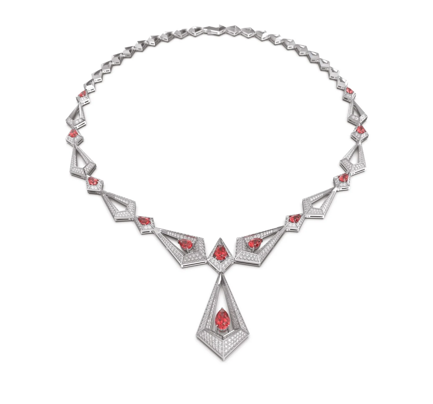 This stunning necklace from the Geo Collection combines the structural allure of modern geometry with the romantic glow of pink sapphires.