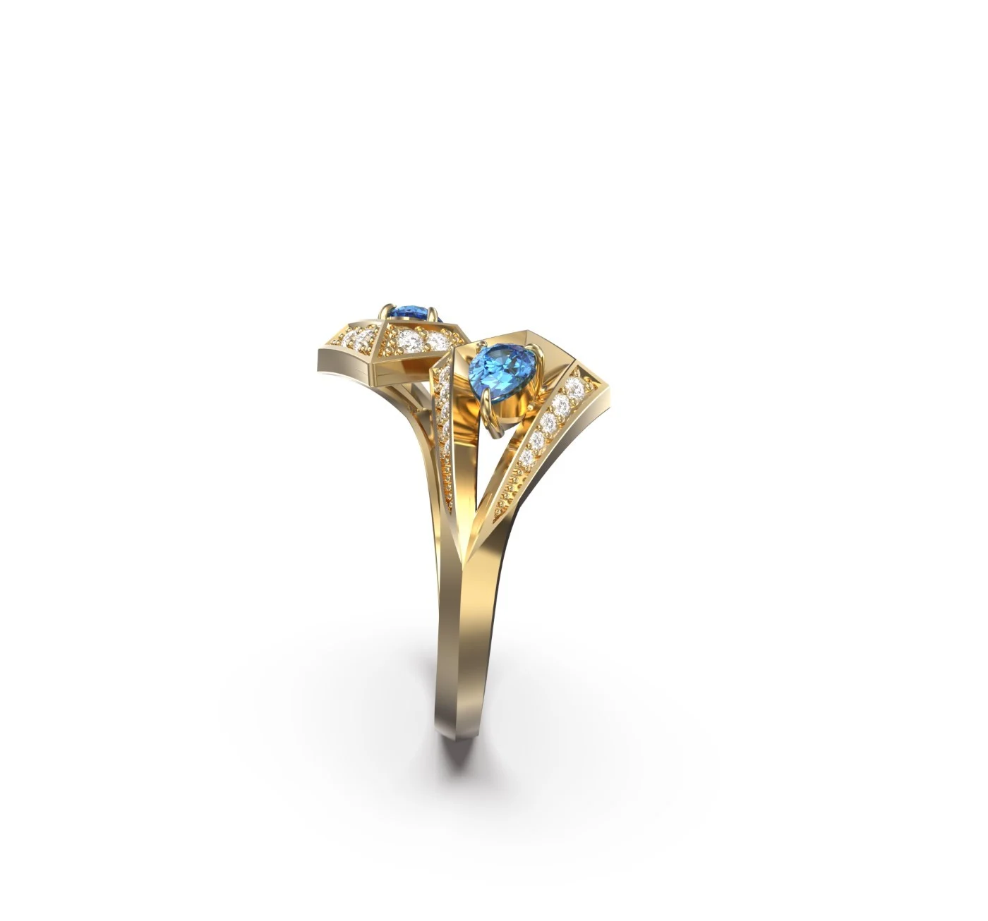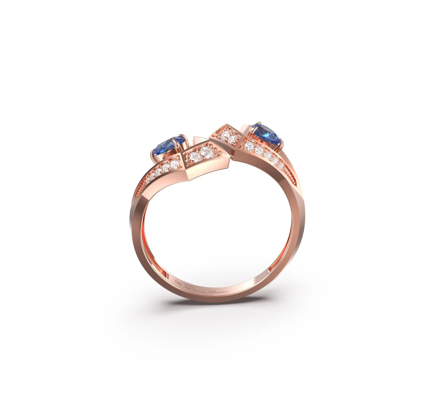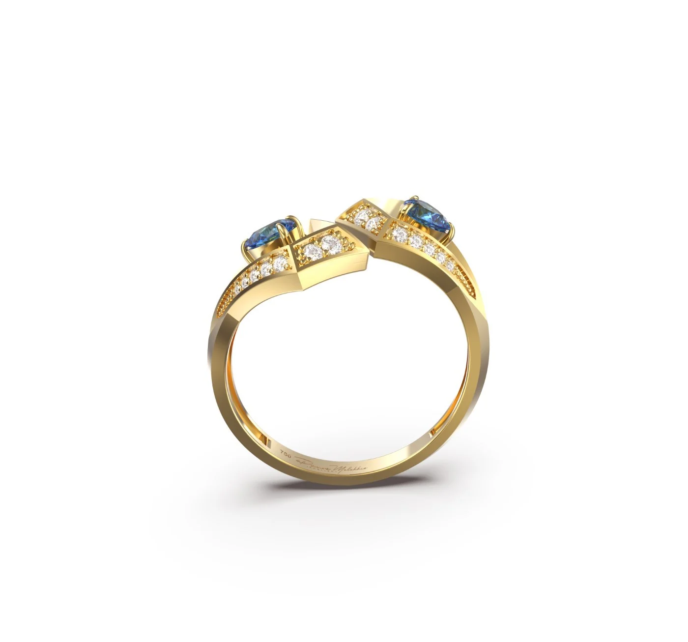 Geo Collection Ring in White, Yellow, Rose gold & Blue Sapphire