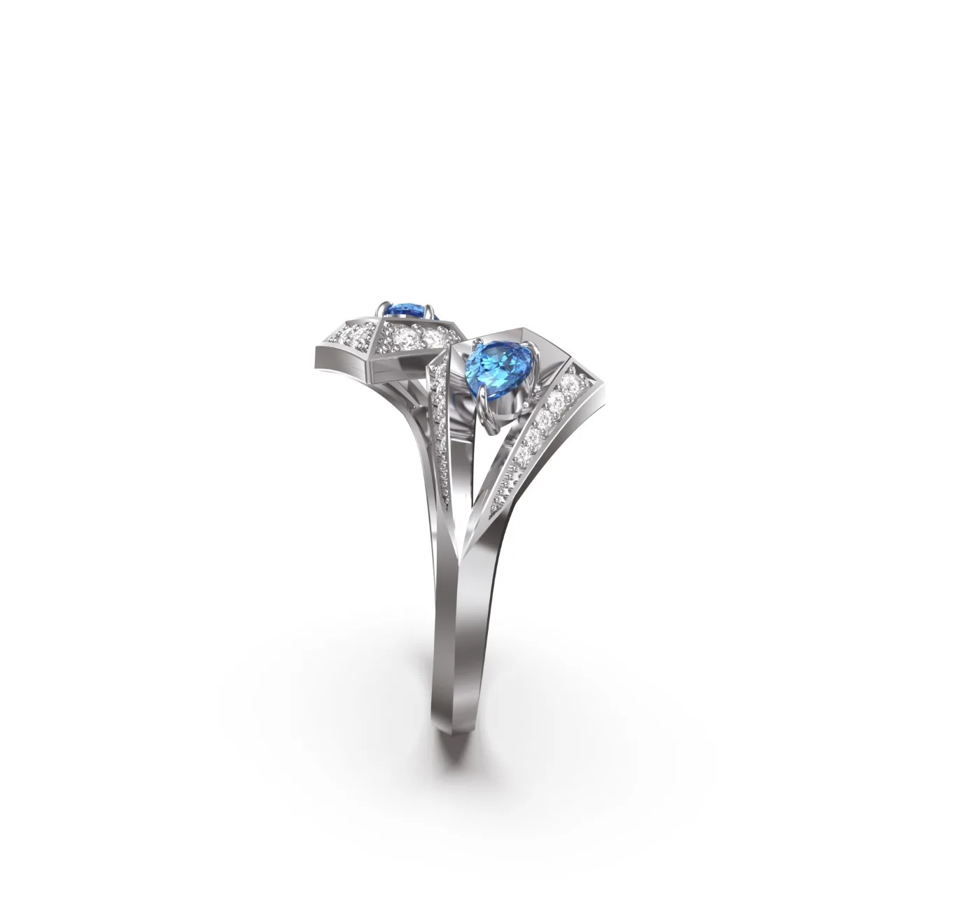 The split shank and angular setting create a dynamic sense of movement, celebrating the balance between structure and sparkle.
