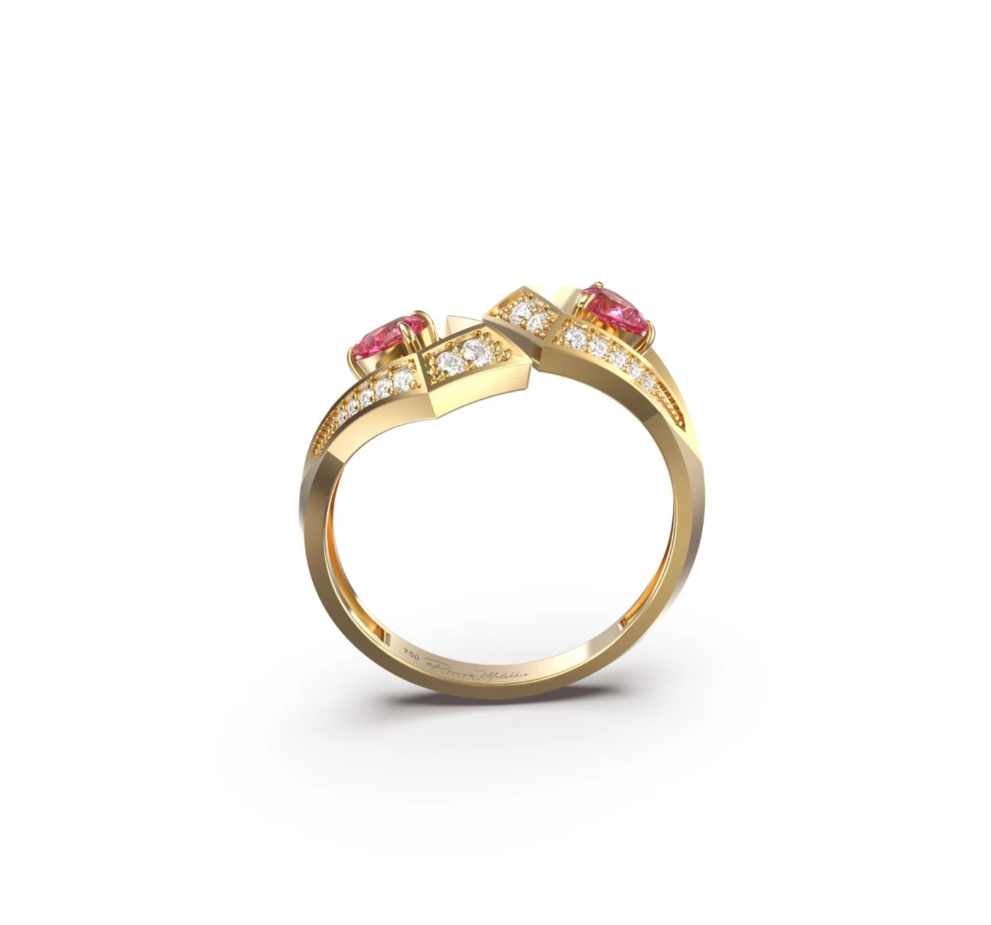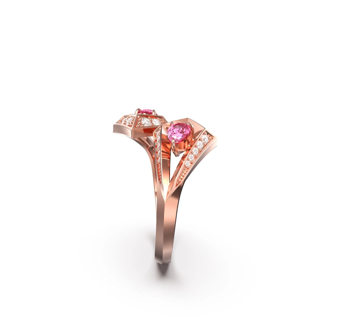 Geo Collection Ring in White, Yellow, Rose gold & Pink Sapphire