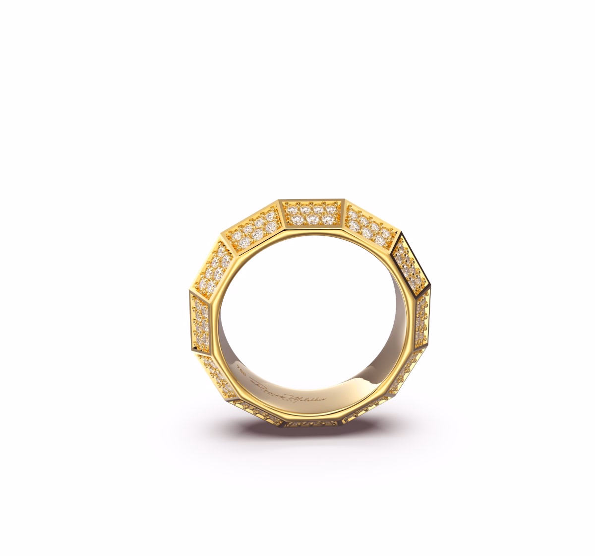 The Empire Collection was inspired with the purpose of creating a generational legacy line by encompassing both timeless tradition and modern notions. Designed to embody heritage and sophistication, each piece is meticulously crafted using 18k gold and finished with a handcrafted setting, ensuring a level of artistry that is unmatched. Designed to be worn by all genders.